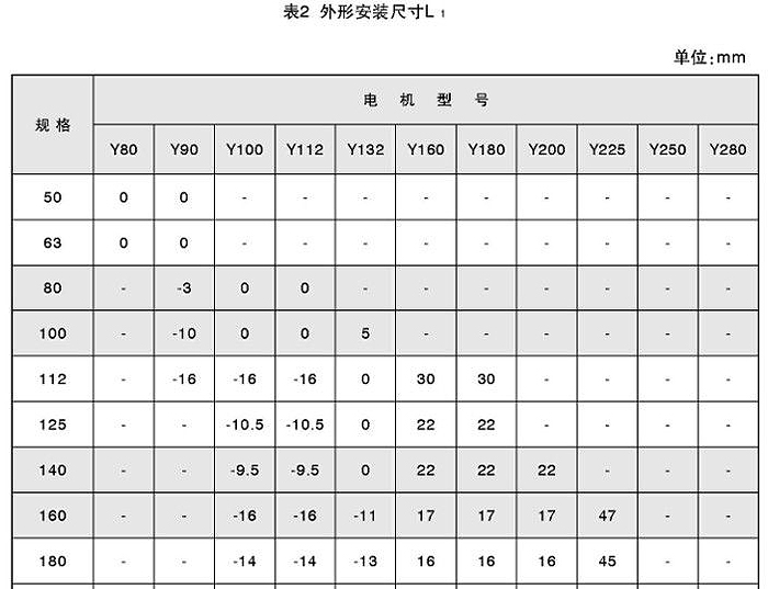 注:表中帶負號者,其數值為電機凹入減速器的長度值。