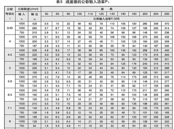 減速器按機械強度計算的公稱輸入功率P1.見表3