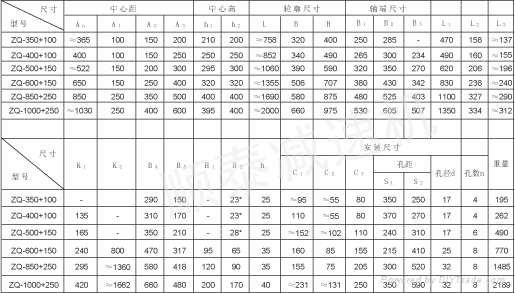 ZQ型大速比減速器,其輸入、輸出軸的位置和安裝尺寸盡量與ZQ型保持不變、箱體部分面做成傾斜,增加的高速級(jí)在上方。有ZQ350+100、ZQ400+100齒輪減速機(jī)、ZQ500+150、ZQ650+150大速比減速機(jī)、ZQ850+250大速比減速器和ZQ1000+250齒輪減速機(jī)六個(gè)規(guī)格.