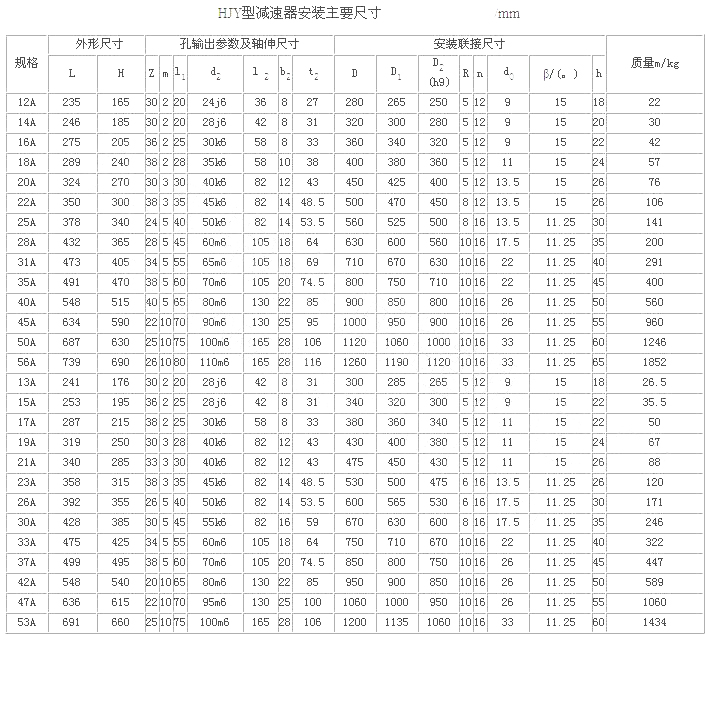 H型星輪減速器(JB/T 8712—1998)代替原混合少齒差星輪減速器(ZBJ 19006—1988)屬少齒差漸開線行星齒輪傳動,具有體積小,承載能力高,傳動比寬、密,效率高,壽命長,傳動平穩,允許高速輸入等特點。采用單元化結構,以行星齒輪、內齒輪、滾動星輪、偏心套和行星架組合的主要單元,代號H;用擴大傳動比的附加單元代號N;用來改變輸入方向的附加單元代號Z。同一種機座號可采用4種承載能力單元結構,因而在產品型號后面附注A、B、C、D4個承載能力代號,即輕型、中型、重型、超重型。適用于冶金、礦山、電力 、起重、運輸、橡膠、水泥、造紙、制糖、鍋爐、建筑等領域,為通用型減速器。