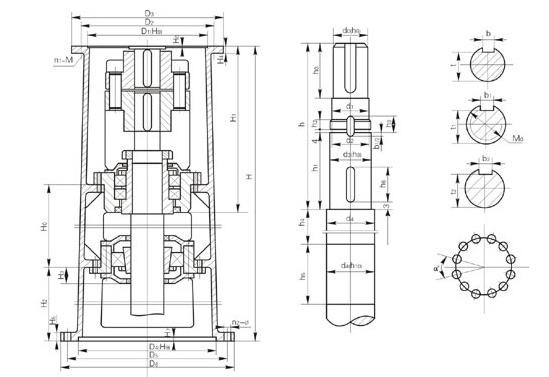 注:圖示所注“h”僅與本樣本BLD、LC-Ⅱ、DC-Ⅱ系列減速機相配,如選用其他型號或其他廠家減速機,“h”需另行計算。增高后的LSJ型機架其下部空間高度可容納205、206或207型雙端面機械密封。
