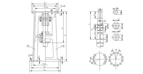 注:圖示所“h”僅與本樣本BLD、LC-Ⅱ、DC-Ⅱ系列減速機相配,如選用其他型號或其他廠家減速機,“h”需另行計算。增高后的LDJ型機架其下部空間高度可容納205、206或207雙端面機械密封。