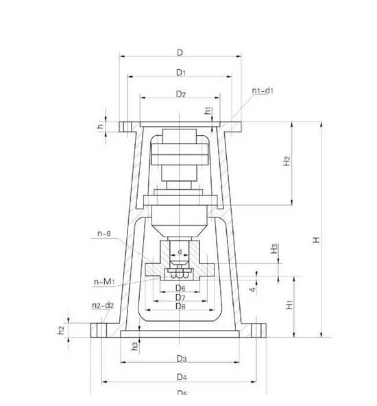 | 機(jī)架型號 | 減速機(jī)型號 | 輸入端接口 | 輸出端接口 | H | H1 | H2 | H3 | d | D6 | D7 | D8 | n-φ | n-M1 | ||||||||||